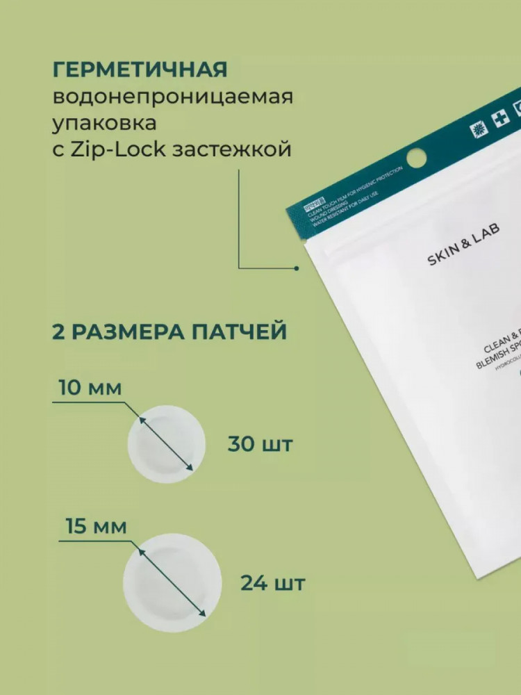 Патчи против воспалений Skin&Lab Clean & Easy Blemish Patch — лечебные противовоспалительные гидрогелевые пластыри. Призваны защищать ранки от попадания болезнетворных бактерий, поддерживая чистоту и ускоряя процесс заживления постакне.