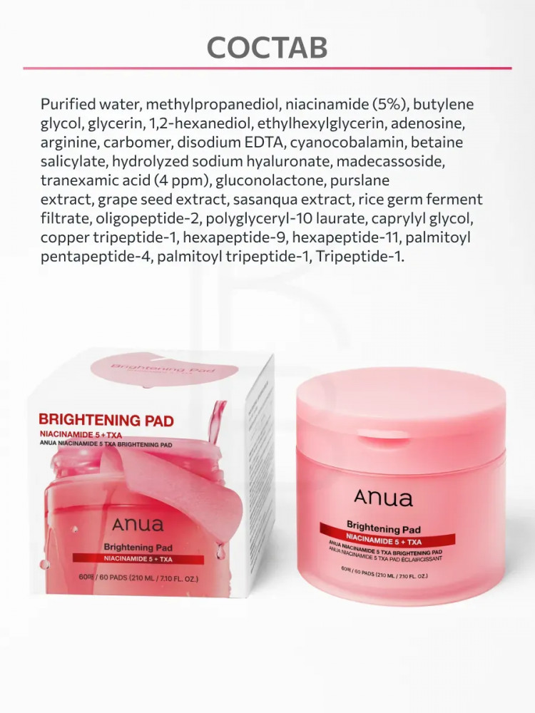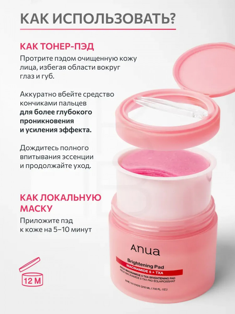 Anua Увлажняющие тонер-пэды «Niacinamide 5 TXA Brightening Pad»