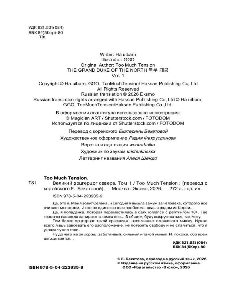 💳 Оплатить за товар можно при получении 🇰🇿 Есть бесплатная доставка по Казахстану от 1 дня 🎁 Копите бонусы с каждой покупки Серия: Земляничные манхвы. Истории о сладкой любви Многие мечтают оказаться в любимой книге на месте главной героини. Вот только Юми, точнее теперь уже Селена, не просила перемещать ее в роман для взрослых, который она даже не дочитала! Она получает контроль над телом уже после замужества, в ожидании первой брачной ночи с Барасом, «чудовищным эрцгерцогом». За окном метель, у Селены нет ни знаний, ни денег, ни шанса избежать заточения, описанного в оригинальной новелле. |