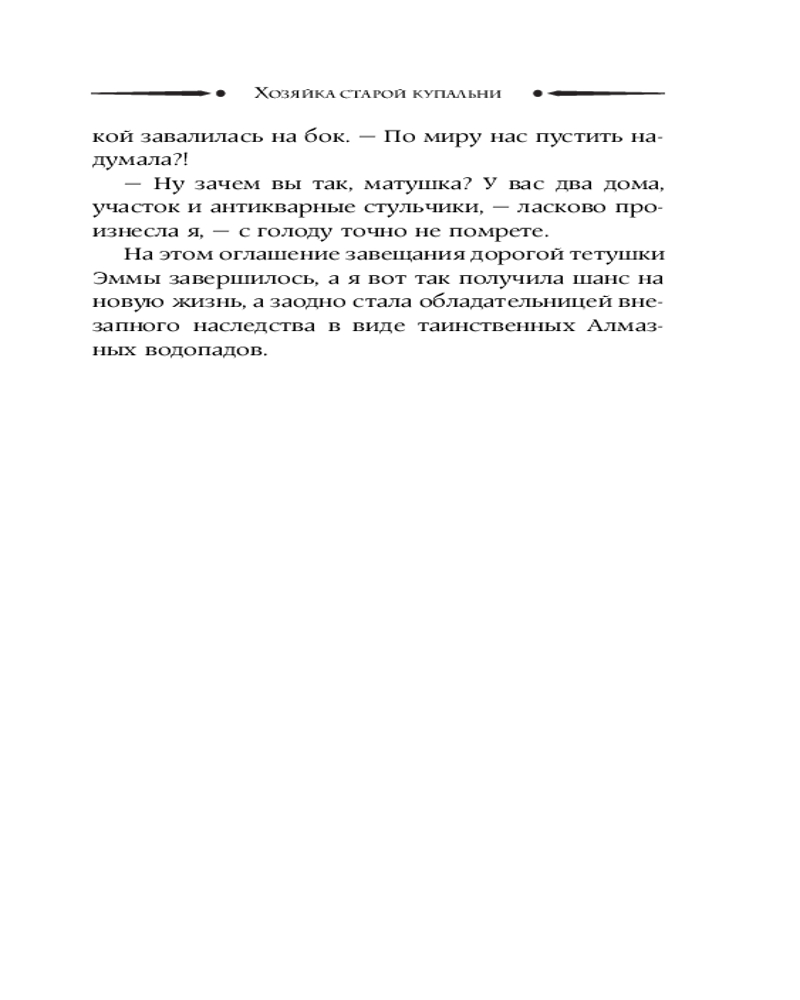 💳 Оплатить за товар можно при получении 🇰🇿 Есть бесплатная доставка по Казахстану от 1 дня 🎁 Копите бонусы с каждой покупки Серия: Необыкновенная магия. Шедевры Рунета Вот попала, так попала... Из своего мира, да в чужой. В тело молодой девушки, которая внезапно стала наследницей таинственных «Алмазных водопадов». Моя мачеха собралась всё прибрать к своим рукам, а меня выдать замуж за старого, обрюзгшего проходимца. Как бы не так! Предвкушая новую жизнь, я сбежала из дома, но ни водопадов, ни тем более алмазов не дождалась. Зато нашла старую баню с весьма импозантными клиентами и зловредным духом, местную мафию и одного очень симпатичного дознавателя. И что мне теперь со всем этим богатством делать? |
