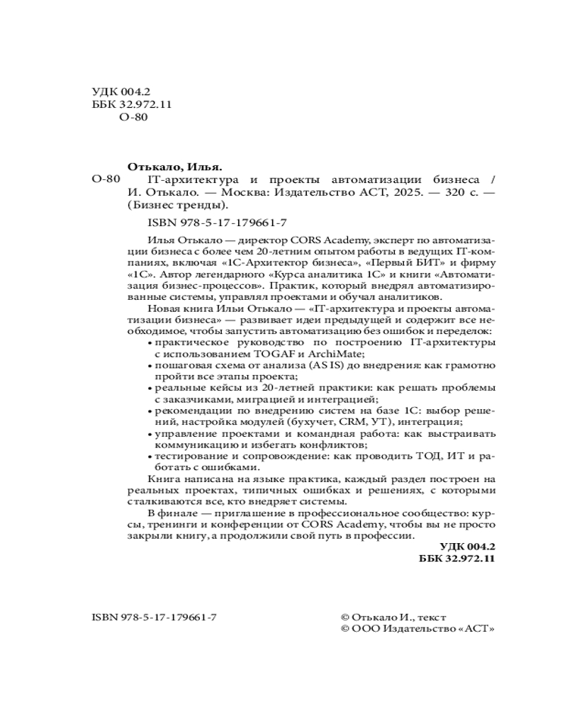 | IT-архитектура и проекты автоматизации бизнеса Илья Владимирович Отькало +231 (бонус)