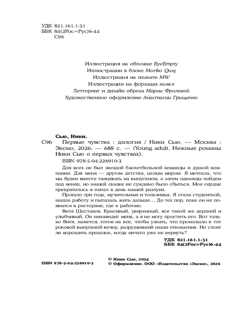 💳 Оплатить за товар можно при получении 🇰🇿 Есть бесплатная доставка по Казахстану от 1 дня 🎁 Копите бонусы с каждой покупки Серия: Young adult. Нежные романы Ники Сью о первых чувствах Бестселлер Ники Сью о первой любви теперь в новом лимитированном издании! История Риты и Вити — это роман о многолетней дружбе, взрослении, семейных ценностях, прощении и, конечно же, любви. Ники Сью — популярная писательница молодежной прозы, ее роман «Пепел» получил премию «Эксмо Дебют 2024» и уже завоевал сердца миллионов читателей в Сети! |