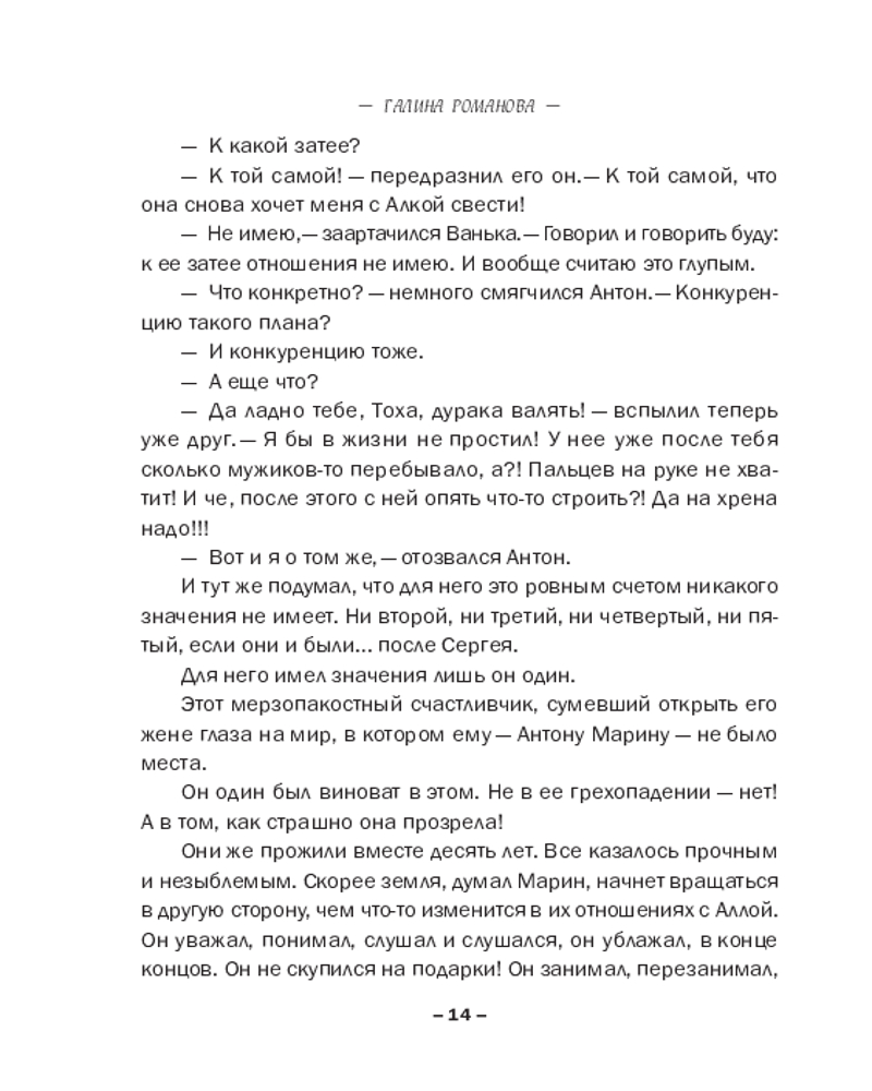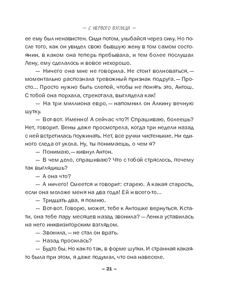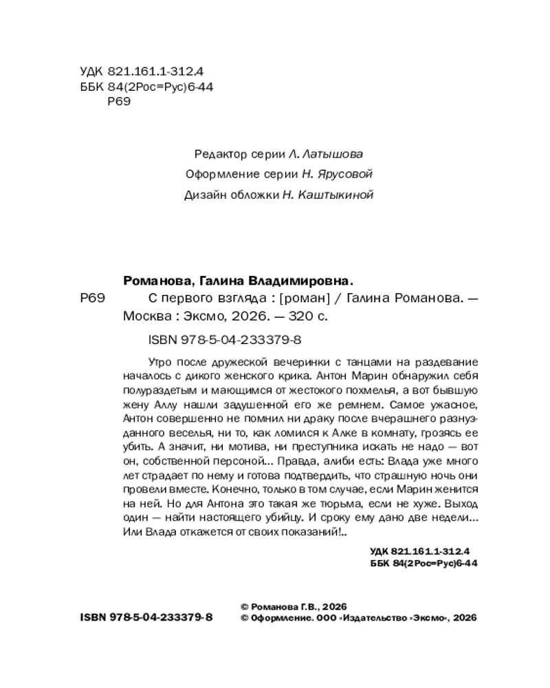 💳 Оплатить за товар можно при получении 🇰🇿 Есть бесплатная доставка по Казахстану от 1 дня 🎁 Копите бонусы с каждой покупки Серия: Криминальный роман: любовь и преступление (обложка) Утро после дружеской вечеринки с танцами на раздевание началось с дикого женского крика. Антон Марин обнаружил себя полураздетым и мающимся от жестокого похмелья, а вот бывшую жену Аллу нашли задушенной его же ремнем. Самое ужасное, Антон совершенно не помнил ни драку после вчерашнего разнузданного веселья, ни то, как ломился к Алке в комнату, грозясь ее убить. А значит, ни мотива, ни преступника искать не надо — вот он, собственной персоной... Правда, алиби есть: Влада уже много лет страдает по нему и готова подтвердить, что страшную ночь они провели вместе. Конечно, только в том случае, если Марин женится на ней. Но для Антона это такая же тюрьма, если не хуже. Выход один — найти настоящего убийцу. И сроку ему дано две недели... Или Влада откажется от своих показаний!.. |