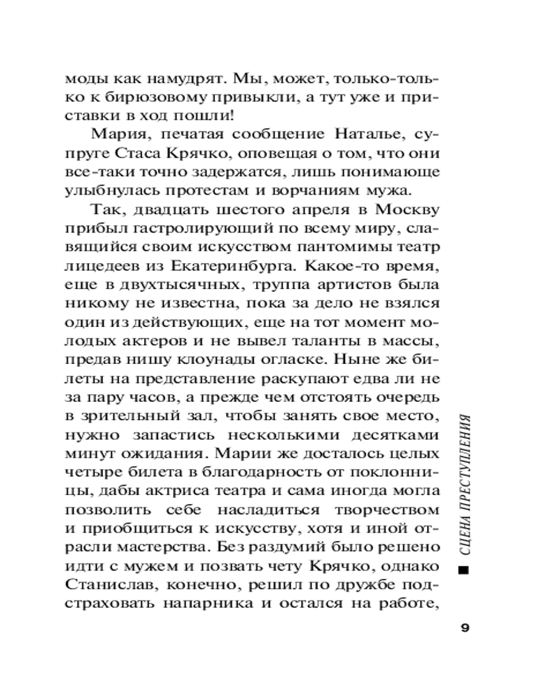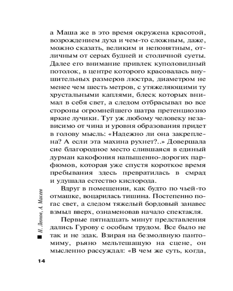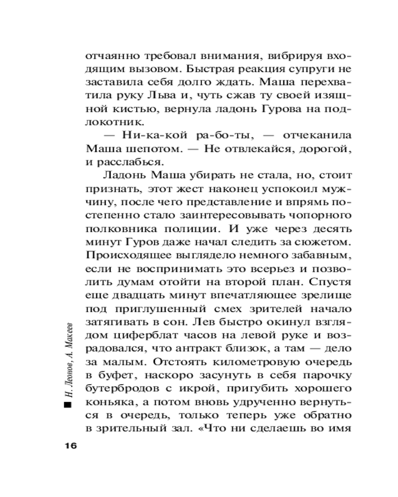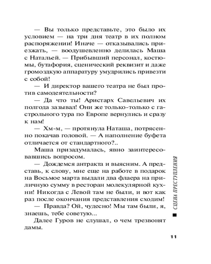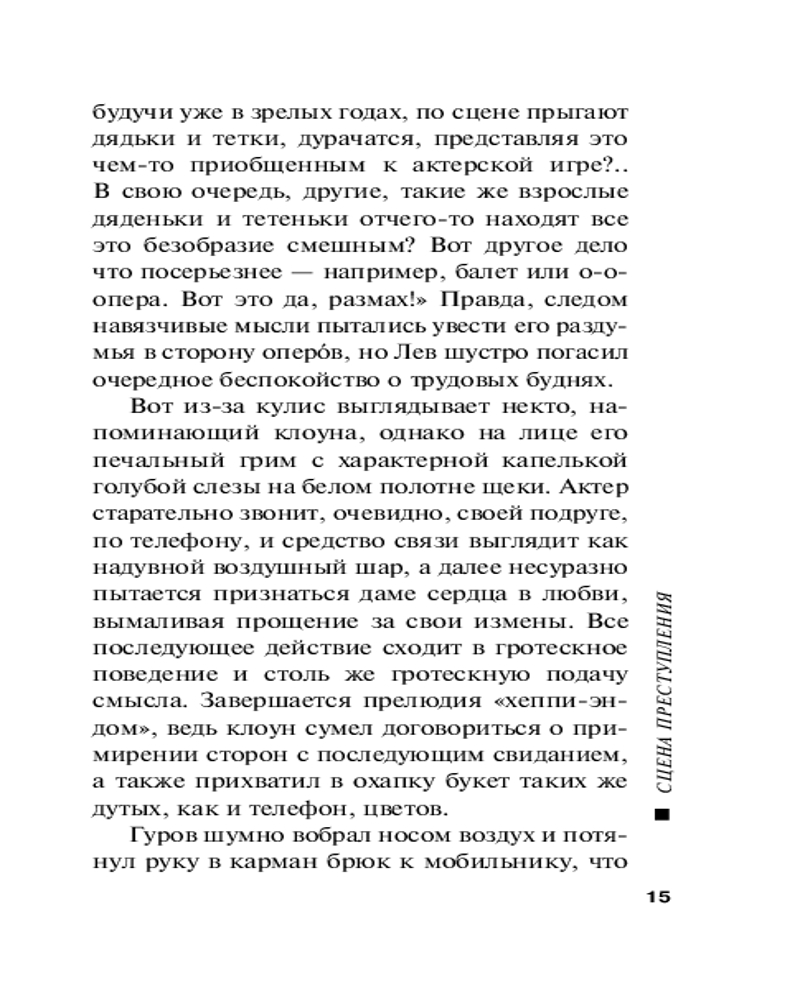 💳 Оплатить за товар можно при получении 🇰🇿 Есть бесплатная доставка по Казахстану от 1 дня 🎁 Копите бонусы с каждой покупки Серия: Русский бестселлер (обложка) Полковник МВД Лев Гуров приходит на спектакль театра лицедеев, приехавшего в Москву на гастроли. Неожиданно в разгар представления зрительный зал заполняется усыпляющим газом, в результате чего публика, в том числе Гуров, ненадолго теряет сознание. Очнувшись, зрители видят на сцене повешенного худрука с табличкой на груди: «Театр требует жертв!» Полковник начинает расследование по горячим следам. Он понимает, что злоумышленник не успел покинуть помещение театра. Но как его вычислить, если все участники представления и персонал одинаково загримированы, а камеры видеонаблюдения выведены из строя?.. Сыщик отметает одного подозреваемого за другим, понимая, что подбирается к настоящему убийце всё ближе и ближе... |