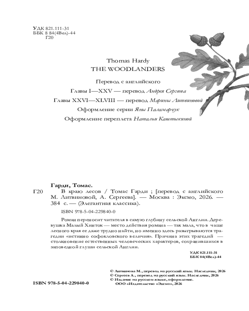 💳 Оплатить за товар можно при получении 🇰🇿 Есть бесплатная доставка по Казахстану от 1 дня 🎁 Копите бонусы с каждой покупки Серия: Элегантная классика Роман «В краю лесов» переносит читателя в самую глубину сельской Англии. Деревушка Малый Хинток — место действия романа — так мала, что в чаще лесного края ее даже трудно найти, но именно здесь разыгрываются трагедии «истинно софокловского величия». Причина этих трагедий — столкновение естественных человеческих характеров, сохранившихся в заповедной глуши сельской Англии. |