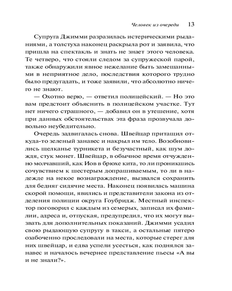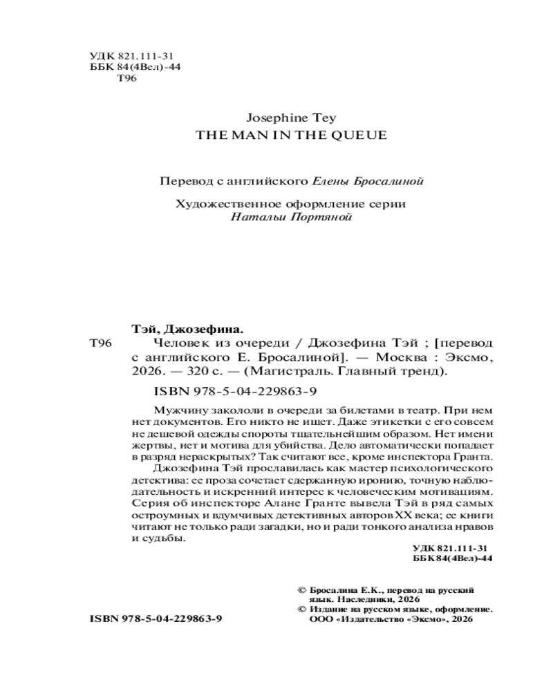 💳 Оплатить за товар можно при получении 🇰🇿 Есть бесплатная доставка по Казахстану от 1 дня 🎁 Копите бонусы с каждой покупки Серия: Магистраль. Главный тренд Мужчину закололи в очереди за билетами в театр. При нем нет документов. Его никто не ищет. Даже этикетки с его совсем не дешевой одежды спороты тщательнейшим образом. Нет имени жертвы, нет и мотива для убийства. Дело автоматически попадает в разряд нераскрытых? Так считают все, кроме инспектора Гранта. |