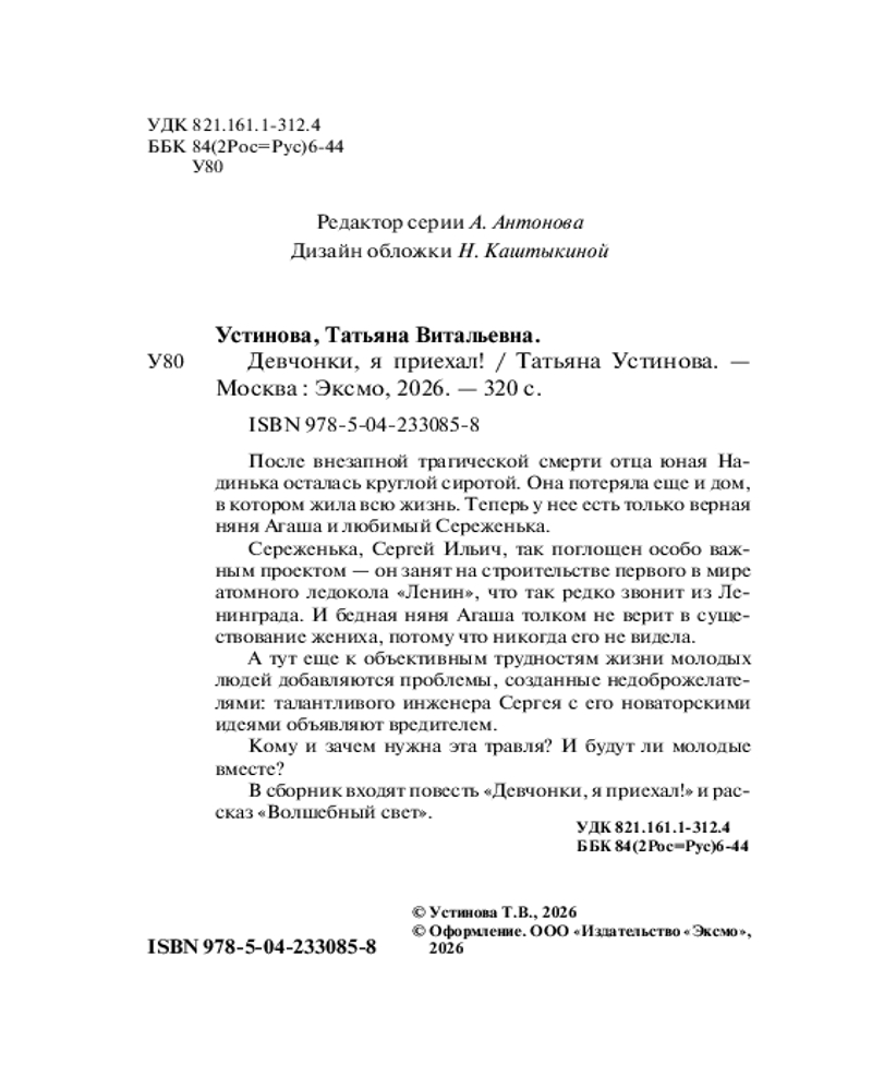 💳 Оплатить за товар можно при получении 🇰🇿 Есть бесплатная доставка по Казахстану от 1 дня 🎁 Копите бонусы с каждой покупки Серия: Татьяна Устинова: лучшее (обложка) После внезапной трагической смерти отца юная Надинька осталась круглой сиротой. Она потеряла еще и дом, в котором жила всю жизнь. Теперь у нее есть только верная няня Агаша и любимый Сереженька. Сереженька, Сергей Ильич, так поглощен особо важным проектом: он занят на строительстве первого в мире атомного ледокола «Ленин», что так редко звонит из Ленинграда. И бедная няня Агаша толком не верит в существование жениха, потому что никогда его не видела. А тут еще к объективным трудностям жизни молодых людей добавляются проблемы, созданные недоброжелателями: талантливого инженера Сергея с его новаторскими идеями объявляют вредителем. Кому и зачем нужна эта травля? И будут ли молодые вместе? |