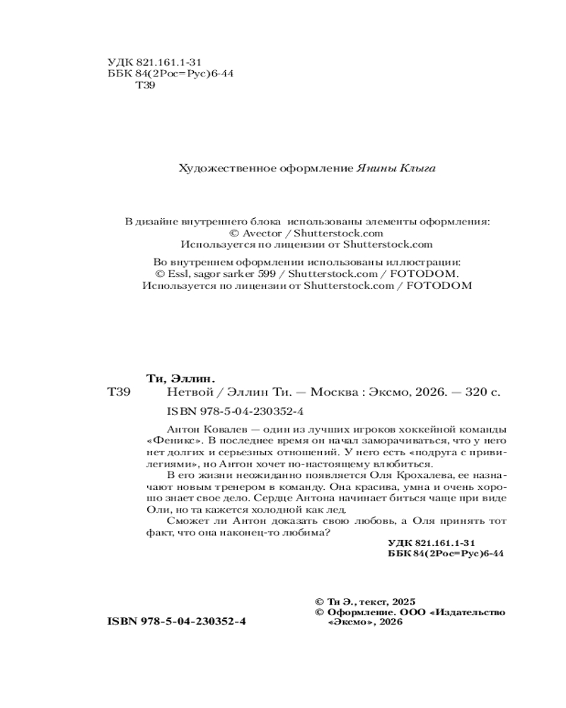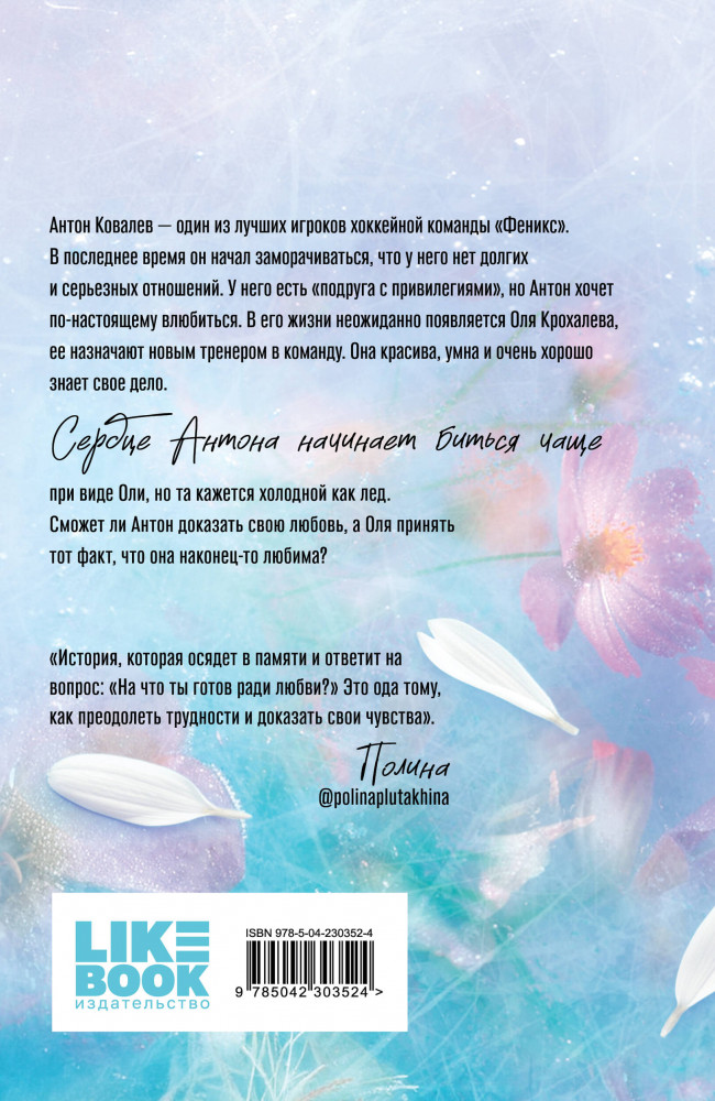 💳 Оплатить за товар можно при получении 🇰🇿 Есть бесплатная доставка по Казахстану от 1 дня 🎁 Копите бонусы с каждой покупки Серия: Young Adult. Любовь растопит даже лед. Романтика от Эллин Ти За что я ее полюбил? За красоту. За характер. За кепку идиотскую эту, которую она на работу постоянно таскает. За то, что Антошей называет и заботится обо мне. За то, что сдается, что перестает стены между нами строить. Да... За всё вообще-то. Антон Ковалев — один из лучших игроков хоккейной команды «Феникс». В последнее время он начал заморачиваться, что у него нет долгих и серьезных отношений. У него есть «подруга с привилегиями», но Антон хочет по-настоящему влюбиться. В его жизни неожиданно появляется Оля Крохалева, ее назначают новым тренером в команду. Она красива, умна и очень хорошо знает свое дело. Сердце Антона начинает биться чаще при виде Оли, но та кажется холодной как лед. Сможет ли Антон доказать свою любовь, а Оля — принять тот факт, что она наконец-то любима? |