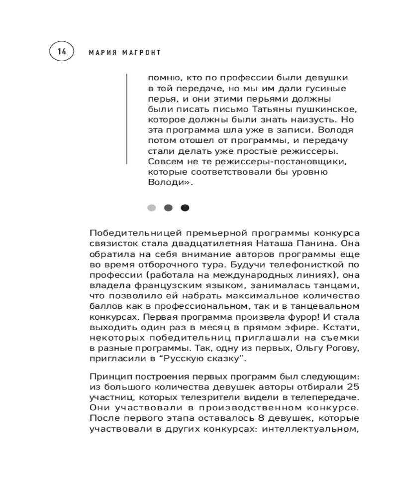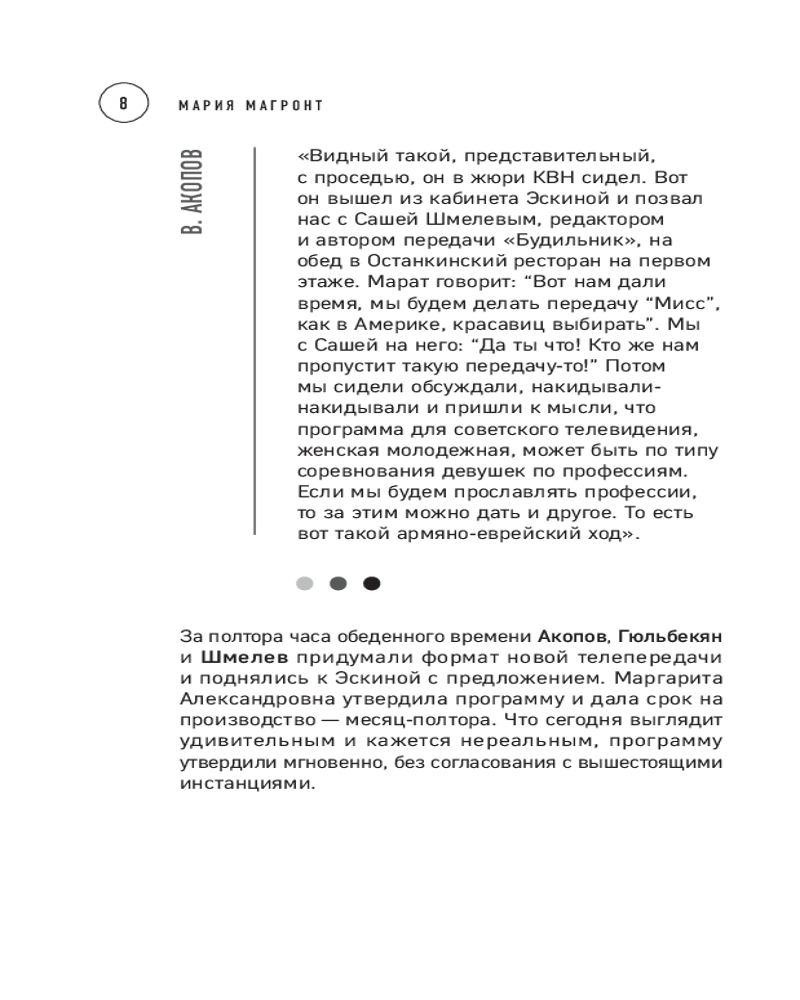 💳 Оплатить за товар можно при получении 🇰🇿 Есть бесплатная доставка по Казахстану от 1 дня 🎁 Копите бонусы с каждой покупки Серия: Мастерская кино. Секреты киноиндустрии Сегодня на отечественном телевидении не так много программ, которые могут гордиться долгожительством, а уж тем более собственными авторскими идеями. Эта книга о программах, во время эфира которых улицы «вымирали», о пионерах-создателях этих знаковых телевизионных передач: «А ну-ка, девушки!», «От всей души», «Клуб путешественников», «Что? Где? Когда?», «Любовь с первого взгляда», «Пресс-клуб», «Будка гласности», «Акуна матата», «Времечко», «Счастливый случай», «Намедни», «Взгляд», «Дежурный по стране» и другие. |
