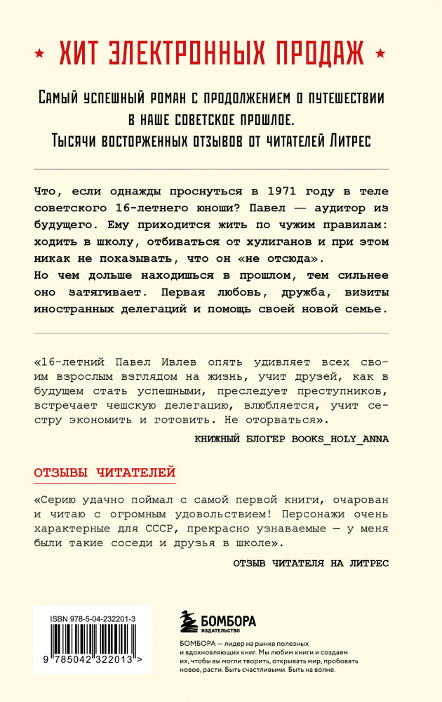 💳 Оплатить за товар можно при получении 🇰🇿 Есть бесплатная доставка по Казахстану от 1 дня 🎁 Копите бонусы с каждой покупки Серия: Попасть в СССР. Роман с продолжением о нашем прошлом Что, если однажды проснуться не в XXI веке, а в 1971 году, в теле советского 16-летнего юноши, где каждая ошибка может стоить слишком дорого? Павел — человек из будущего, оказавшийся в эпохе, где ему приходится учиться жить по чужим правилам: ходить в школу, отбиваться от хулиганов и при этом не выдать, что он «не отсюда». Но чем дальше находишься в прошлом, тем сильнее оно затягивает. Первая любовь, дружба, визиты иностранных делегаций и помощь своей новой семье. |