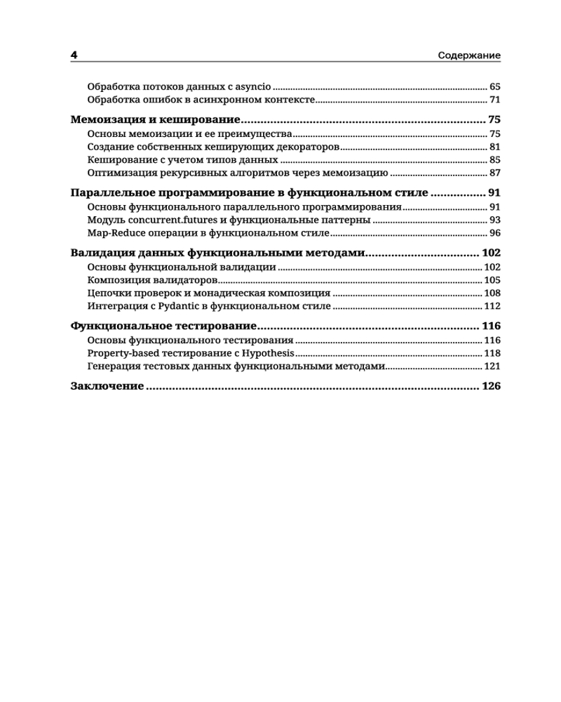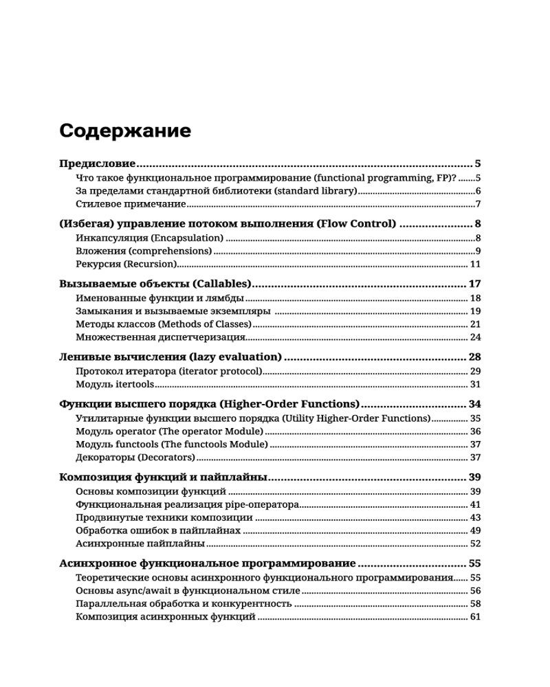 Вы узнаете, как использовать функции высшего порядка, замыкания, декораторы и ленивые вычисления для построения гибких программных решений. Подробно рассматриваются механизмы итераторов и генераторов, принципы композиции функций, организация пайплайнов обработки данных и применение асинхронного функционального программирования. Особое внимание уделено темам мемоизации, конкурентности и интеграции с популярными инструментами, такими как itertools, functools, operator, asyncio и Pydantic.