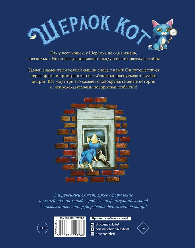 💳 Оплатить за товар можно при получении 🇰🇿 Есть бесплатная доставка по Казахстану от 1 дня 🎁 Копите бонусы с каждой покупки Серия: Детективные истории кота Шерлока Как у всех кошек, у Шерлока не одна жизнь, а несколько. Но он всегда посвящает каждую из них разгадке тайны. Самый знаменитый усатый сыщик снова с нами! Он путешествует через время и пространство и с лёгкостью распутывает клубки интриг. Вас ждут три его самые головокружительные истории с непредсказуемыми поворотами событий! Закрученный сюжет, яркое оформление и самый обаятельный герой — вот формула идеальной детской книги, которую ребёнок дочитает до конца! |