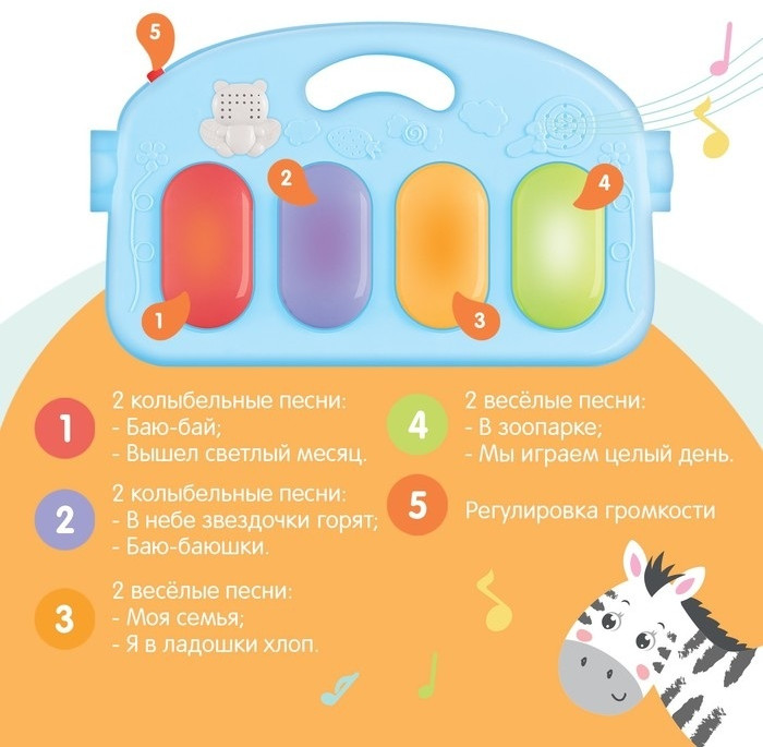 Музыкальный развивающий коврик с пианино+64