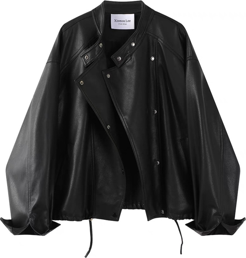 Женская куртка из экокожи oversize. Стильная куртка из мягкой экокожи в трендовом oversize-крое. Модель с асимметричной застёжкой и декоративными кнопками выглядит современно и эффектно, легко вписывается в повседневные и городские образы. Свободный силуэт обеспечивает комфорт и свободу движений, а эластичная кулиска по низу позволяет регулировать посадку.
