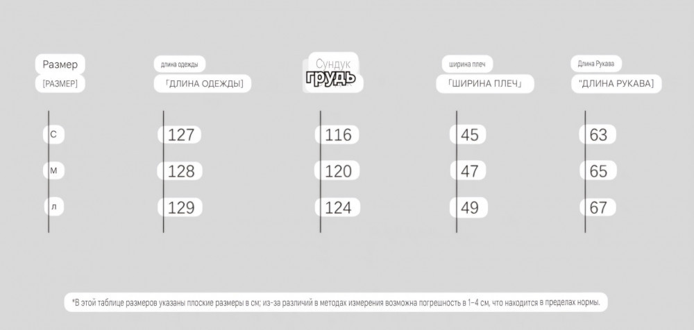 • длина пальто: 129 см;