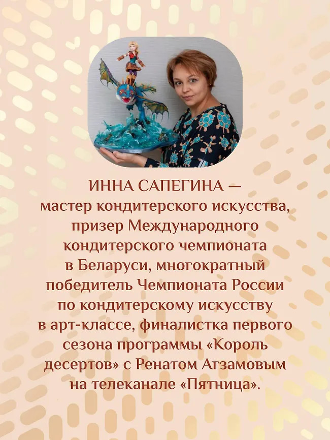 💳 Оплатить за товар можно при получении 🇰🇿 Есть бесплатная доставка по Казахстану от 1 дня 🎁 Копите бонусы с каждой покупки Серия: #Рецепты Рунета Инна Сапегина – мастер кондитерского искусства, призер Международного кондитерского чемпионата в Беларуси, многократный победитель Чемпионата России по кондитерскому искусству в арт-классе в номинациях «Сахарные цветы», «Лепка фигур», «Детский торт», финалистка первого сезона программы «Король десертов» с Ренатом Агзамовым на телеканале «Пятница». Вы держите в руках не просто книгу – это учебник, азбука для всех, кто хочет познать кондитерский мир. Мы начнём с самых простых рецептов и будем постепенно знакомиться с новыми ингредиентами и инструментами. Поэтому книга подойдёт всем: и студентам-кондитерам, и мамам, мечтающим украшать праздники своих детей, и профессионалам, желающим освоить новые техники кондитерского дела. |