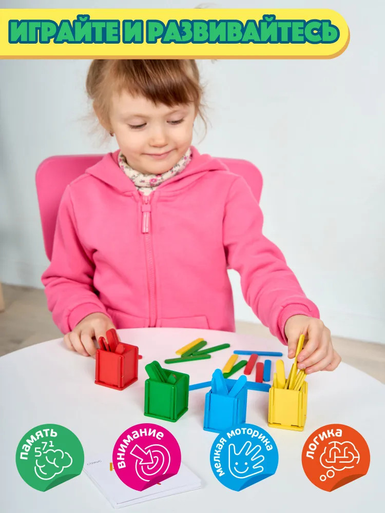 💳 Оплатить за товар можно при получении 🇰🇿 Есть бесплатная доставка по Казахстану от 1 дня 🎁 Копите бонусы с каждой покупки Развивающая деревянная игра для детей «Палочки в стаканчиках» это уникальный конструктор из дерева — настоящее открытие для маленьких исследователей! Она станет идеальным выбором для развития навыков логического мышления, цветовосприятия, координации движений и усидчивости. Конструктор «Палочки в стаканчиках» объединяет в себе простоту и интересную задумку, позволяя детям играть и одновременно развиваться. |