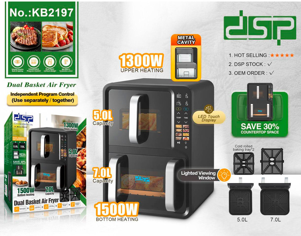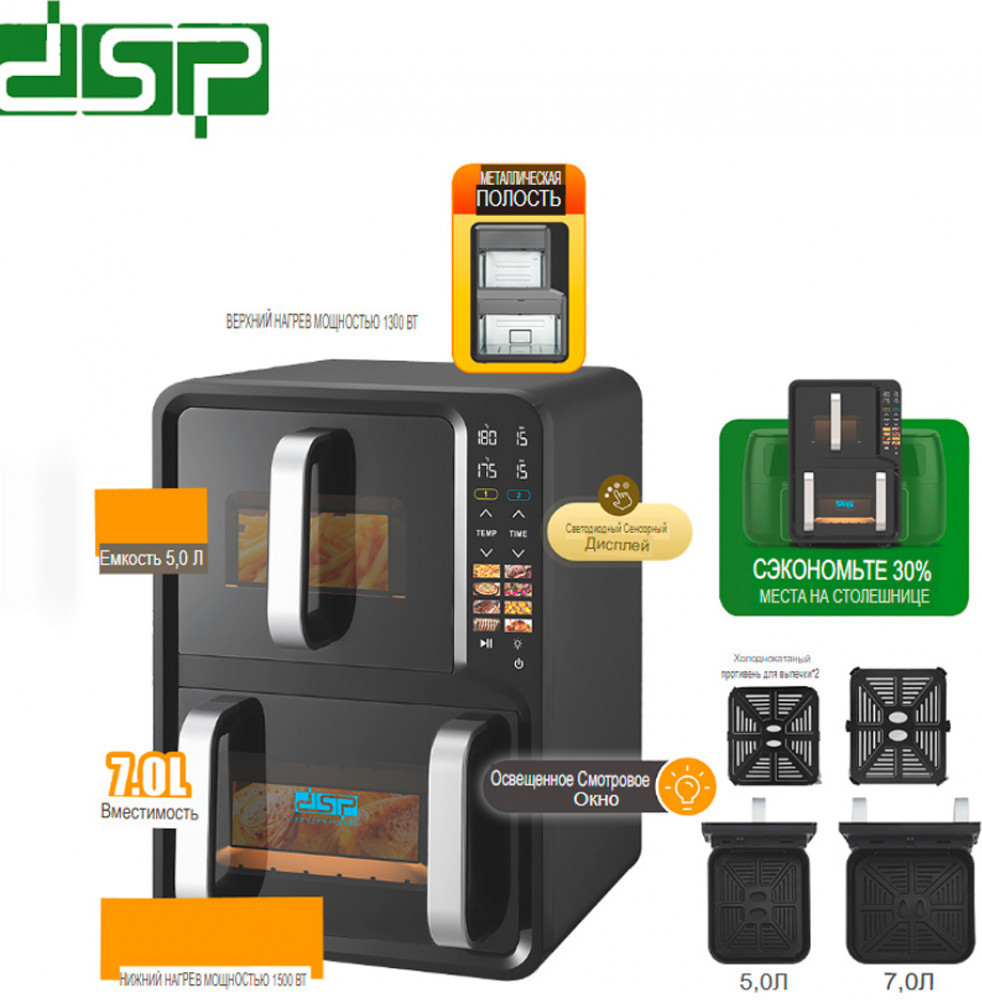 💳 Оплатить за товар можно при получении 🇰🇿 Есть бесплатная доставка по Казахстану от 1 дня 🎁 Копите бонусы с каждой покупки Аэрогриль DSP KB-2197 Dual Basket Air Fryer. Откройте для себя новые возможности приготовления пищи с инновационной аэрофритюрницей DSP KB-2197. Это мощное и универсальное устройство с двумя независимыми корзинами позволит вам готовить разнообразные блюда одновременно, экономя ваше время и силы. |