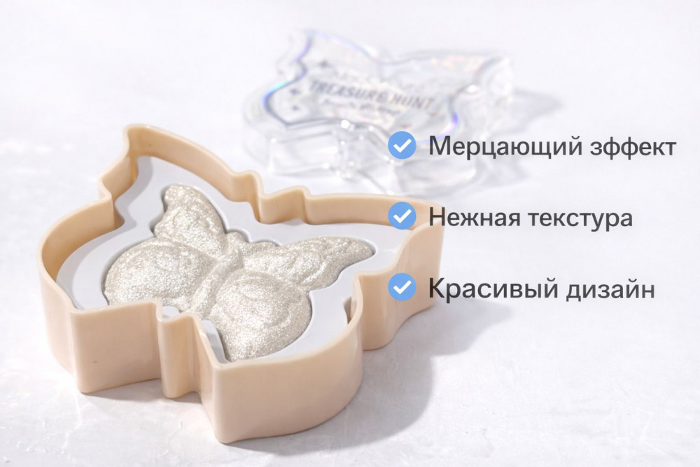 Сияющий хайлайтер для лица в форме бабочки, оттенок 01 Белый