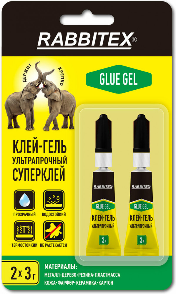 Секундный клей-гель Rabbitex — надёжное решение для быстрого и прочного склеивания в доме, на даче, в мастерской или офисе. Клей-гель секундный Rabbitex — это мгновенная прочность, качество и долговечность. Идеально подходит для ремонта пластика, керамики, дерева, металла, кожи и других материалов. Оптимальный выбор для склеивания вертикальных поверхностей и пористых материалов. Клей-гель не течет, наносится точно, обеспечивая чистое и аккуратное склеивание. Не применяется для посуды, контактирующей с пищей!