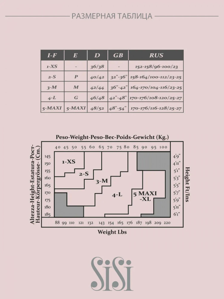 • широкий размерный ряд, включая большие размеры. В размере 5 (XL) модель представлена с дополнительной задней вставкой «два шва», которая позволяет колготкам лучше растягиваться в объёме, а также снижает давление на швы для максимальной прочности;