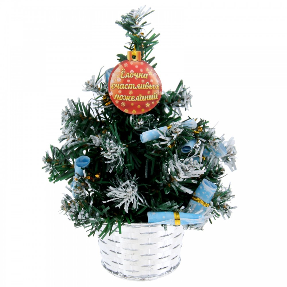 Елочку брала в офис, хочу чтобы каждый перед Новым Годом получил счастливое пожелание и оно обязательно сбылось. Балл сняла только за то, что уж очень помятая она в упаковке и на корзиночке снаружи есть остатки клея, а в целом идея таких елочек классная!
