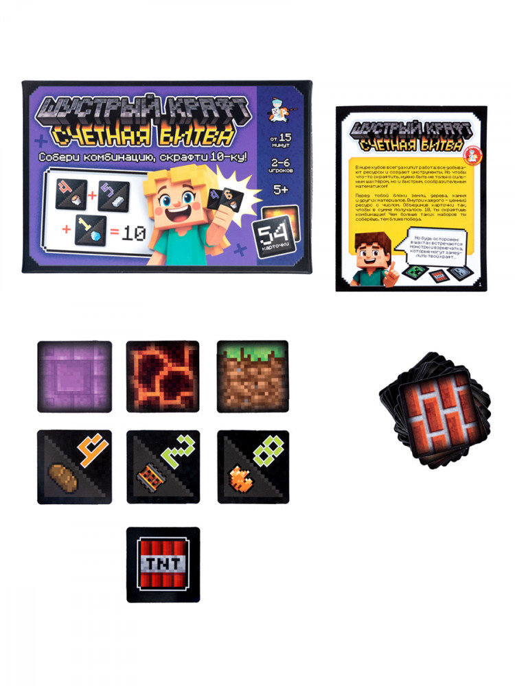 💳 Оплатить за товар можно при получении 🇰🇿 Есть бесплатная доставка по Казахстану от 1 дня 🎁 Копите бонусы с каждой покупки Настольная игра «Шустрый Крафт» Счетная битва — это не просто развлечение, это захватывающее приключение в мир чисел и стратегии. Игра тренирует быстрый ум и реакцию, ведь мгновенное распознавание комбинаций, дающих в сумме 10, ключ к победе. С каждой партией оттачивается навык устного счета, что станет ценным навыком в учебе и повседневной жизни. Понимание чисел станет вашим лучшим другом! |