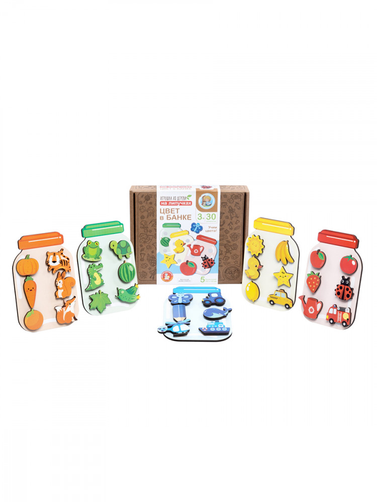 | Десятое королевство Развивающая игра из дерева на липучках «Цвет в банке»+33 (бонуса)