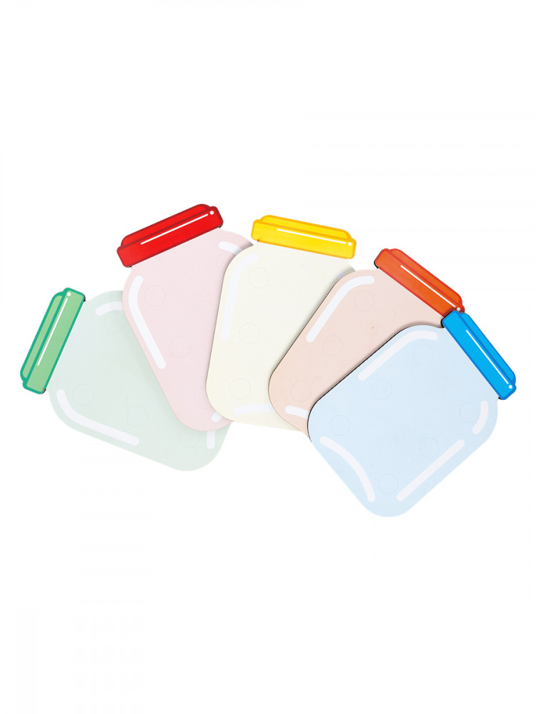 • цветное игровое поле — банки (10.5×15см) — 5шт. (оранжевый, голубой, жёлтый, красный, зелёный);