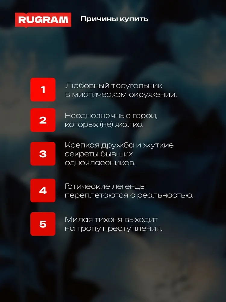 💳 Оплатить за товар можно при получении 🇰🇿 Есть бесплатная доставка по Казахстану от 1 дня 🎁 Копите бонусы с каждой покупки Старинный городок Эдервиль радушно принимает гостей. Даже странно, что Майкл не хотел возвращаться сюда. Вокруг тишина и покой, прохожие приветливо улыбаются. А на городском кладбище сами собой появляются цветы. Готические легенды оживают на каждом шагу, прошлое переплетается с настоящим, призраки выходят из небытия. Какая трагедия разыгралась десять лет назад на Изумрудном холме? Почему Майкл расстался с первой любовью, и что думает по этому поводу его жена? Зачем он сжег свой первый изданный роман? Некоторые тайны лучше не знать. Но книга в синей обложке уже открыта… Добро пожаловать в Эдервиль. |