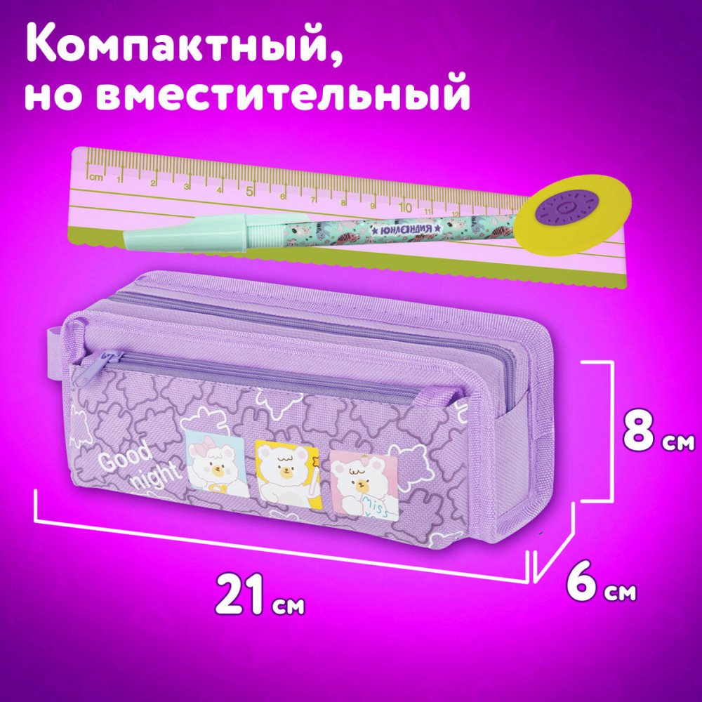 💳 Оплатить за товар можно при получении 🇰🇿 Есть бесплатная доставка по Казахстану от 1 дня 🎁 Копите бонусы с каждой покупки Пенал Юнландия Юниор «Bears» с двумя отделениями предназначен для хранения школьных канцелярских принадлежностей. Застегивается на молнию с металлическим бегунком. Вмещает до 50 предметов. Выполнен из прочного полиэстера, приятного на ощупь. Внутри пенала одно отделение с застежкой-молнией, оснащенной металлическим бегунком. Снаружи дополнительное отделение — карман с застежкой на молнии. Удобная ручка-петля сбоку для переноски. |