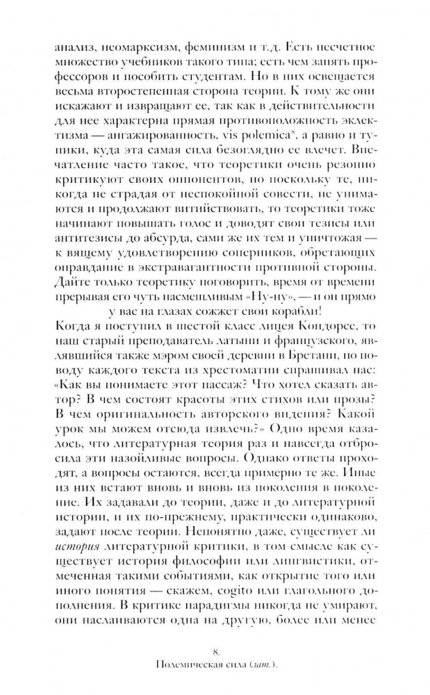💳 Оплатить за товар можно при получении 🇰🇿 Есть бесплатная доставка по Казахстану от 1 дня 🎁 Копите бонусы с каждой покупки Антуан Компаньон (р. 1950) — французский литературовед, профессор Коллеж де Франс и Колумбийского университета, автор нескольких десятков монографий и научно-популярных книг о модернизме, структурализме, французских литературных деятелях — от Монтеня и Паскаля до Пруста и Колетт. Его «Демон теории» (1998), переведенный более чем на десяток мировых языков, — это и глубокий, проницательный обзор достижений и неудач яркого и противоречивого культурного движения второй половины XX века, имя которому — «теория литературы», и увлекательный, живой, местами ироничный анализ ключевых вопросов, которые рассматривают современные литературоведение и нарратология. Узловые проблемы теории Компаньон группирует в семь условных категорий — «литература», «автор», «внешний мир», «читатель», «стиль», «история», «ценность». Вокруг каждой он выстраивает полемический сюжет, приводит хронику противостояния радикальных теоретиков и сопротивляющихся им сторонников так называемого здравого смысла, критически оценивая обе полярные позиции и призывая своих читателей к скептическому взгляду на любую теорию — в том числе теорию здравого смысла. |