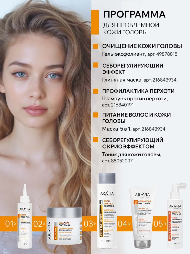 Aravia Шампунь против перхоти для глубокого очищения кожи головы и волос «Total Control Shampoo»