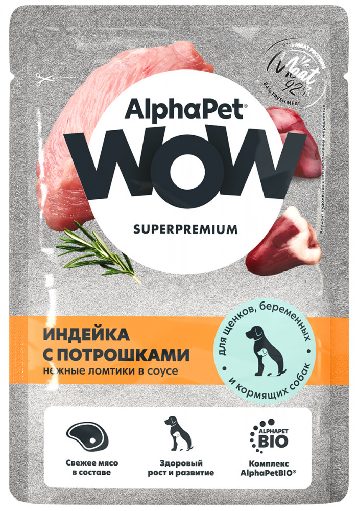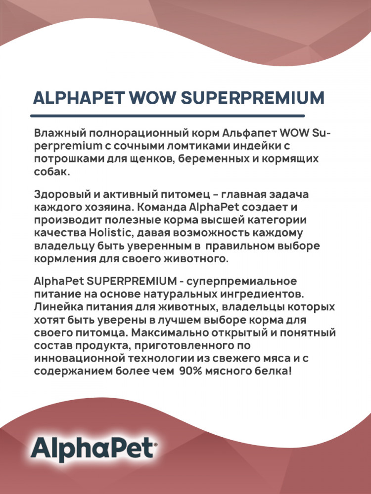 AlphaPet Влажный корм для щенков, беременных и кормящих собак с индейкой и потрошками в соусе