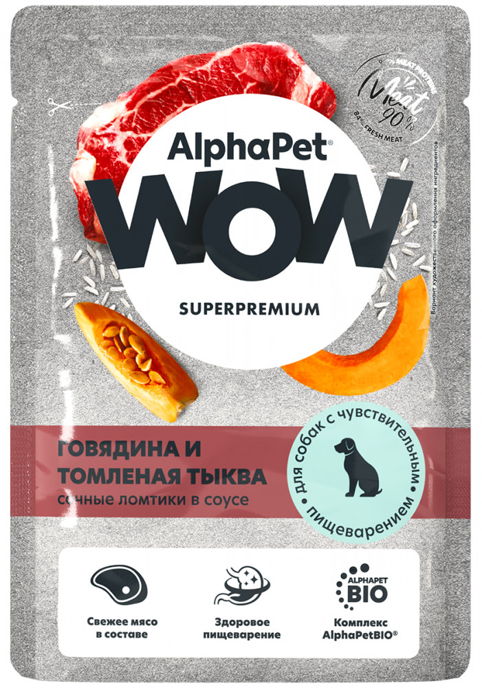 AlphaPet Влажный корм взрослых собак с чувствительным пищеварением с говядиной и томленой тыквой в соусе
