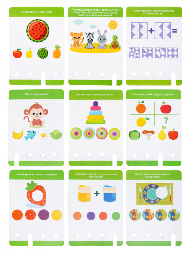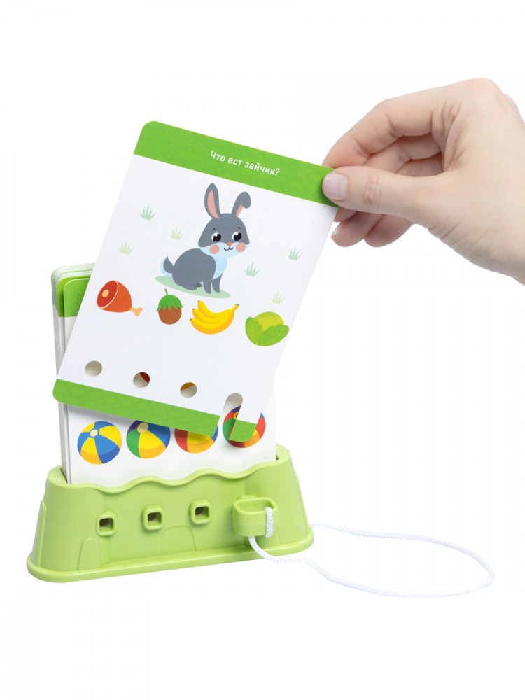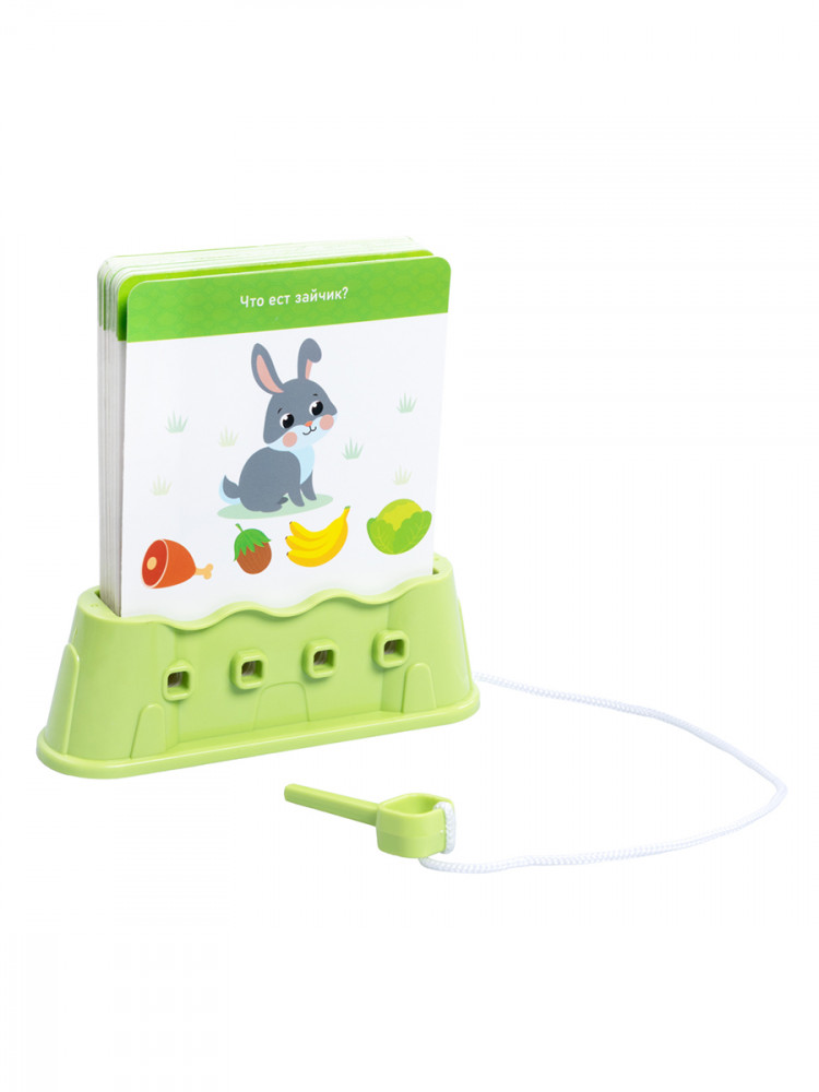 Принцип игры прост: соедините ключ и подставку с помощью шнурка, установите карточки в подставку, внимательно прочитайте задание и выберите правильный ответ. Затем вставьте ключик в отверстие под предполагаемым вариантом. Магия начинается, когда ключик подтверждает вашу правоту: карточка легко вынимается из подставки, сигнализируя об успехе. Если же ответ неверен, карточка останется неподвижной, предоставляя возможность еще раз обдумать решение и найти верный путь.