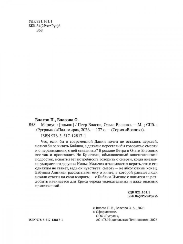 💳 Оплатить за товар можно при получении 🇰🇿 Есть бесплатная доставка по Казахстану от 1 дня 🎁 Копите бонусы с каждой покупки Серия: Волчок Что, если бы в современной Дании почти не осталось церквей, нельзя было читать Библию, а датчане перестали бы говорить о смерти и о переживаниях, с ней связанных? В романе Петра и Ольги Власовых всё так и происходит. Но Кристиан, обыкновенный копенгагенский подросток, испытывает потребность говорить о смерти, когда внезапно умирает его дедушка Нильс. Мальчик отказывается верить, что и его однажды не станет, ведь он чувствует: смерть — не абсолютный конец. Бабушка Анникен рассказывает ему о книге, в которой раньше люди искали ответы на свои вопросы, — о Библии. Именно с попытки ее раздобыть начинается для Криса череда увлекательных и даже опасных приключений… |