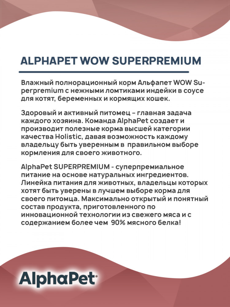 AlphaPet Влажный корм для котят, беременных и кормящих кошек с индейкой в соусе