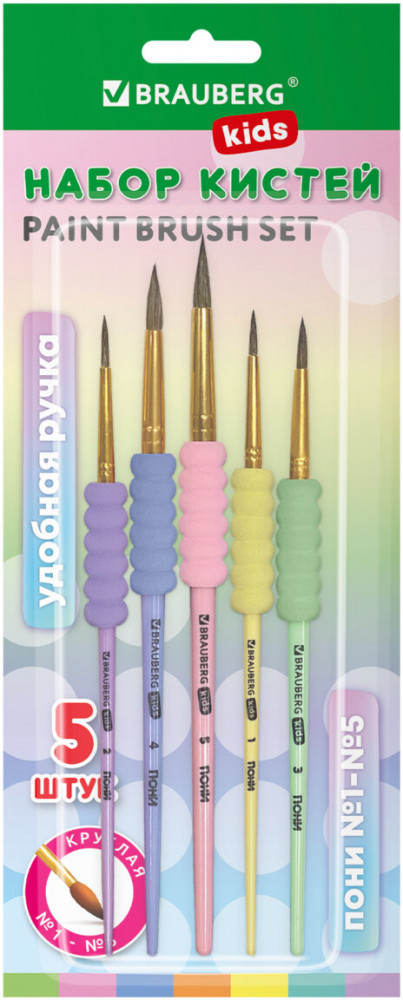 💳 Оплатить за товар можно при получении 🇰🇿 Есть бесплатная доставка по Казахстану от 1 дня 🎁 Копите бонусы с каждой покупки Серия: Kids Набор из пяти кистей разного размера c мягкой EVA-вставкой Brauberg Kids позволяет начинающим художникам решать любые творческие задачи в детском саду, школе и дома. Кисти из волоса пони отлично впитывают и отдают краску, хорошо держат форму, долговечны и надежны. Благодаря кистям № 1, 2, 3 и 4 ребенку будет комфортно прорисовывать мелкие детали. Кисть № 5 позволит делать более крупные мазки и линии. Пластиковую рукоятку c мягкой EVA-вставкой удобно держать в руке. |