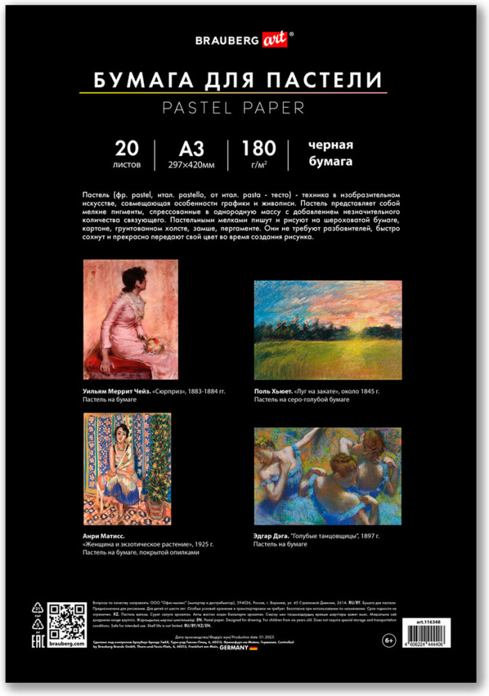 💳 Оплатить за товар можно при получении 🇰🇿 Есть бесплатная доставка по Казахстану от 1 дня 🎁 Копите бонусы с каждой покупки Бумага для пастели Brauberg предназначена для различных техник рисования. Позволяет создавать мягкие и детализированные текстуры на картинах, а при более плотной зарисовке пастель выглядит ярко и сочно. |
