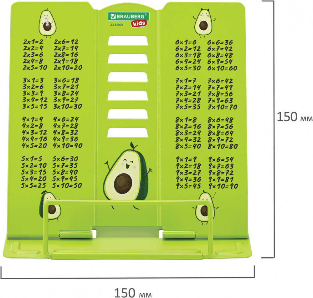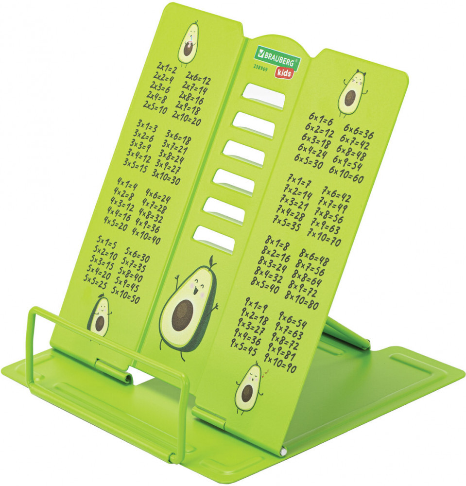 Подставка полностью выполнена из металла, поэтому отлично подойдет для надежной фиксации тяжелых и объемных учебных материалов и книг. Оригинальный дизайн понравится школьнику любого возраста, таблица умножения будет полезна в учебе. Регулируемый угол наклона обеспечивает удобство при работе с текстом, облегчает чтение и выполнение домашней работы.