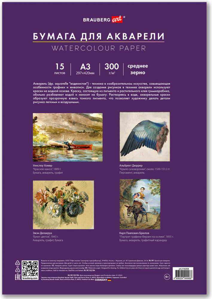 💳 Оплатить за товар можно при получении 🇰🇿 Есть бесплатная доставка по Казахстану от 1 дня 🎁 Копите бонусы с каждой покупки Бумага для акварели Brauberg Art «Classic» содержит набор листов, специально предназначенных для рисования всеми видами водорастворимых красок. Подходит как для профессионалов, так и для любителей. |