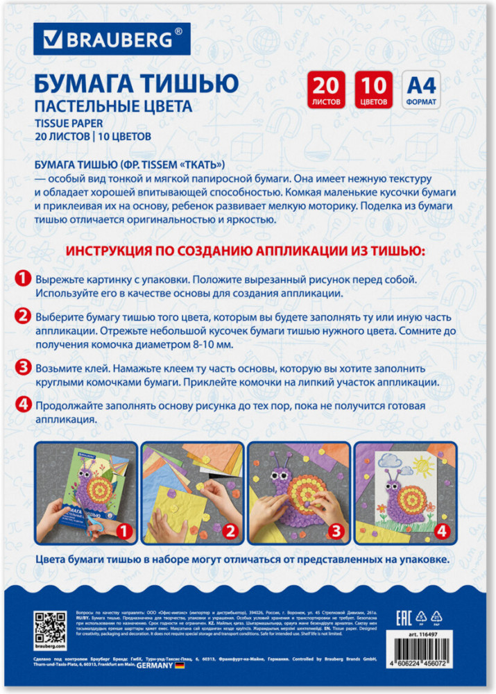 💳 Оплатить за товар можно при получении 🇰🇿 Есть бесплатная доставка по Казахстану от 1 дня 🎁 Копите бонусы с каждой покупки Данный набор бумаги тишью предназначена для детского творчества. Может использоваться детьми от 3 лет для развития моторики и воображения. Набор бумаги пастельного тона состоит из 20 листов, представленных в 10 цветах формата А4, и имеет плотность 17 г/м2. Бумага упакована в красочную картонную папку. Ваш ребенок сможет в полной мере окунуться с вами в мир фантазий, создавая свои первые поделки и аппликации. Набор так же можно использовать для оформления подарков, декорирования, создания красивых цветочных композиций, украшения интерьеров, скрапбукинга. Ваши творческие идеи оживут от одного прикосновения к этой бумаге! Она позволит вам раскрыться в полной мере, как дизайнеру, при оформлении подарков на свадьбы, дни рождения, памятные даты! |