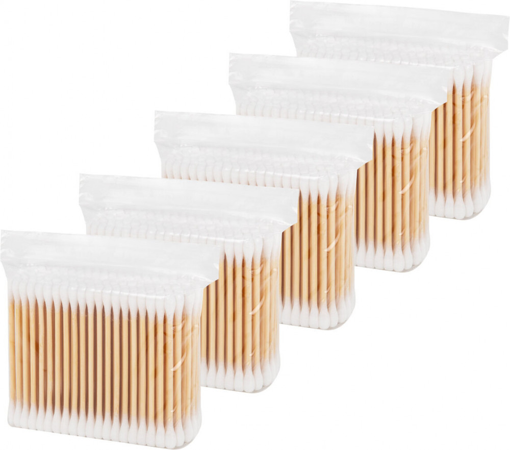Ватные палочки Золотой идеал с бамбуковым стиком предназначены для ежедневных гигиенических и косметических процедур, незаменимы при корректировке и нанесении макияжа. Комплект — 5×200 шт. (всего 1000 шт. в комплекте). Упаковка представляет собой пять полиэтиленовых пакетов с многоразовой застежкой, которые в свою очередь упакованы в большой полиэтиленовый пакет повышенной прочности. Полностью экологически чистый продукт. Ватный аппликатор сделан из 100% натурального хлопка. Стик изготовлен из бамбука. Бамбуковый стик прочный, не гнется, легко справляется с задачами любой сложности. Плотный аппликатор надежно закреплен на концах изделия и прекрасно держит форму при намокании. Не оставляет ворсинок и не расслаивается, что делает использование ватных палочек удобным и безопасным. Плотность ватной намотки 6 г на погонный метр.