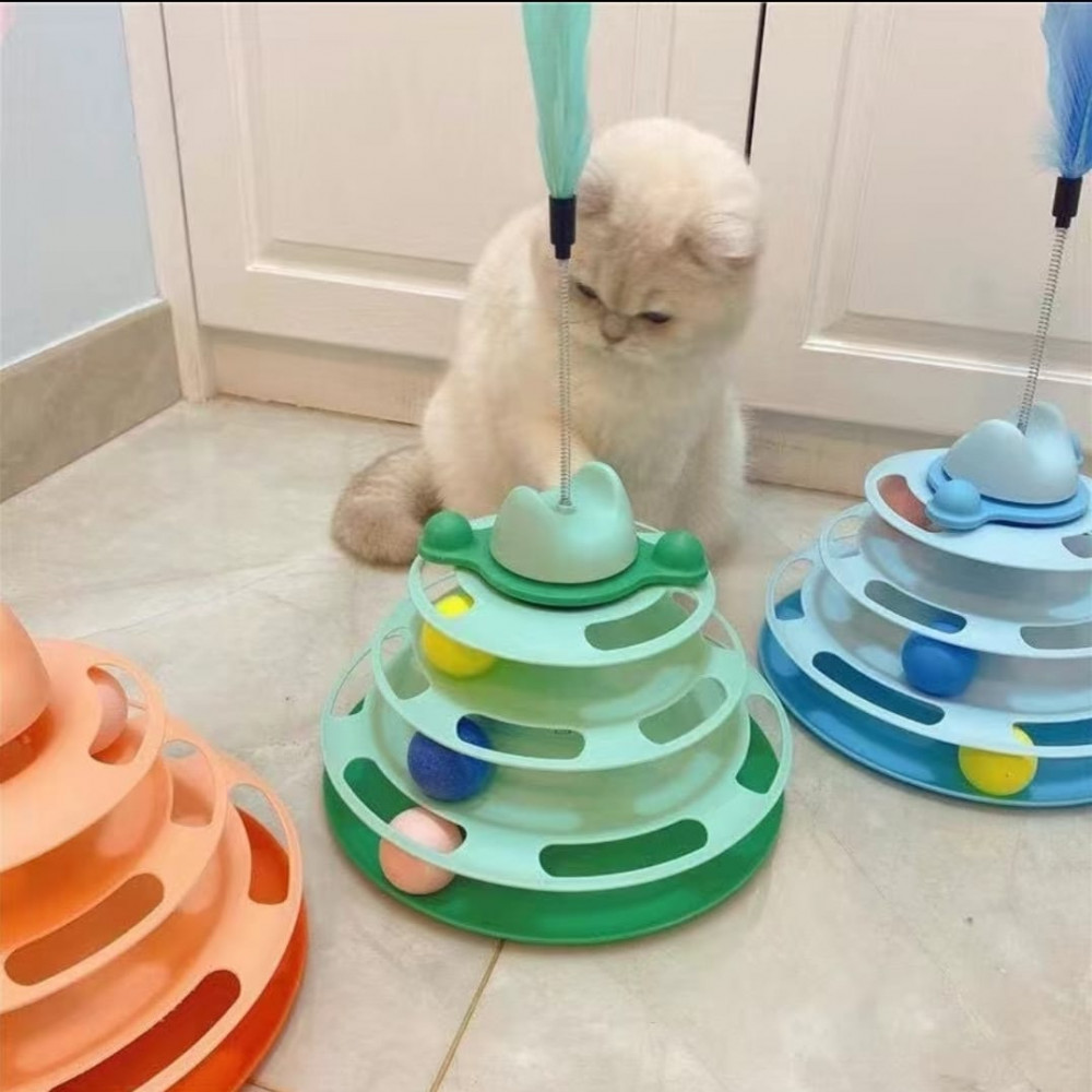 Игрушка-дразнилка для кошек с мячиками и перьями