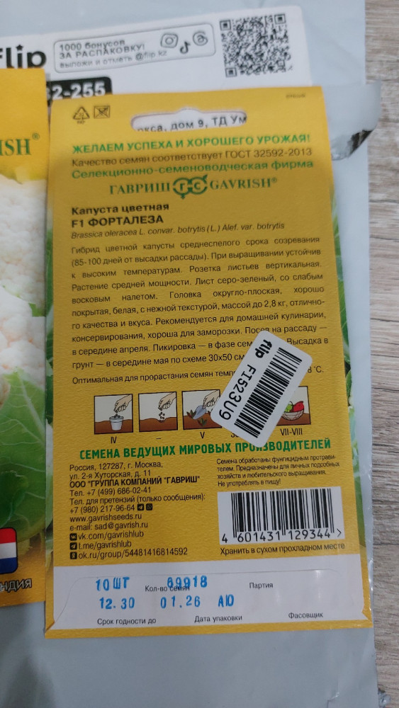 Гавриш Семена капусты цветной «Форталеза F1 Н26»-30% +9