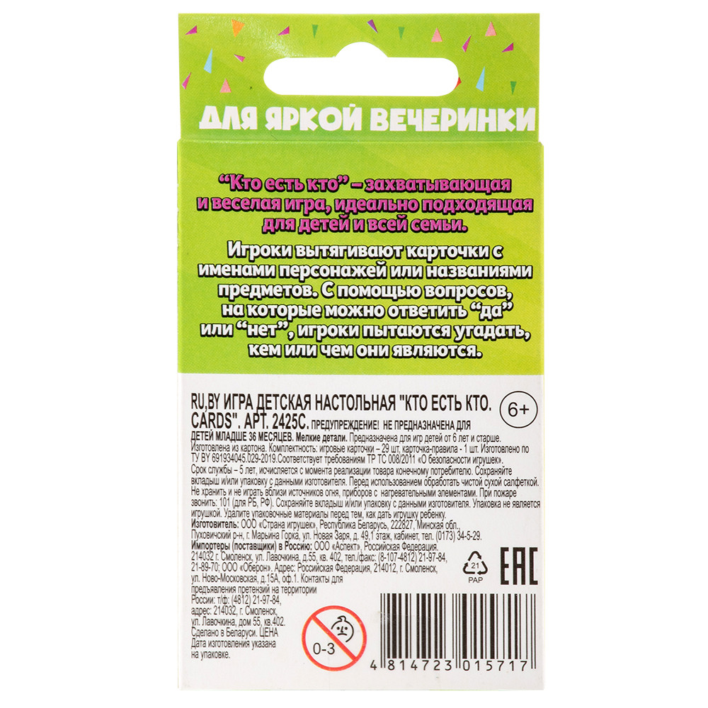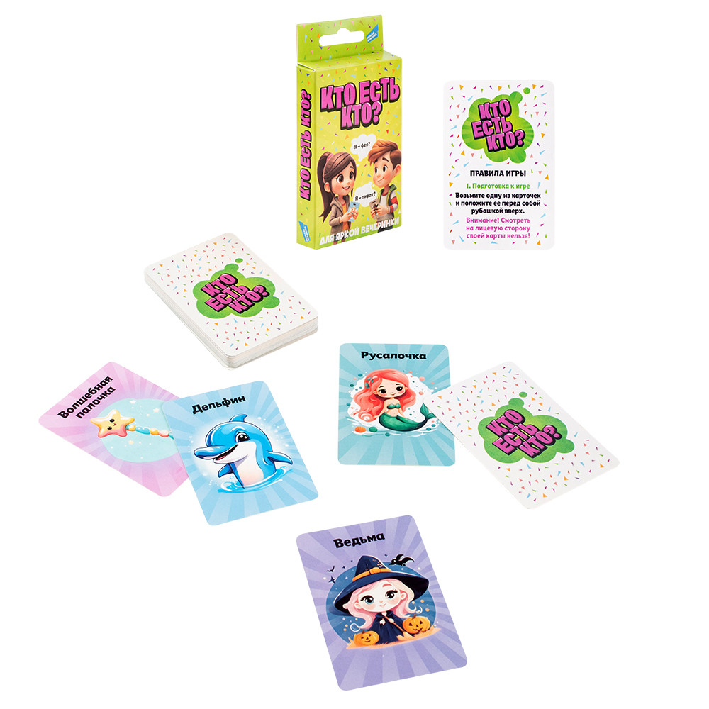 💳 Оплатить за товар можно при получении 🇰🇿 Есть бесплатная доставка по Казахстану от 1 дня 🎁 Копите бонусы с каждой покупки «Кто есть кто» — увлекательная игра в вопросы и ответы, в которой каждый участник становится загадочным персонажем или предметом. Цель игры — первым угадать свою карточку, задавая вопросы, на которые можно ответить только «да» или «нет». Игра отлично развивает логику, воображение и навыки общения, подходит для семейного досуга и весёлых компаний. |