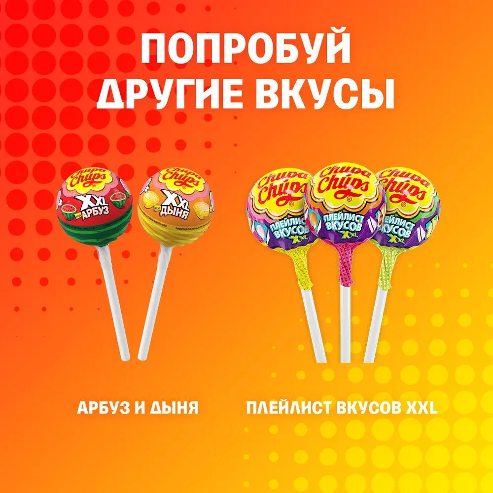 Карамель со вкусом яблока, манго и персика с жевательной резинкой внутри: сахар, патока (из пшеницы), основа резиновая, регуляторы кислотности (лимонная кислота, молочная кислота), агент влагоудерживающий (глицерин), красители (красный свекольный, куркумин, медные комплексы хлорофиллов, экстракт паприки), агент влагоудерживающий (глицерин), ароматизаторы, эмульгатор (соевый лецитин), антиокислитель (e321). Может содержать следы молока и ячменя.