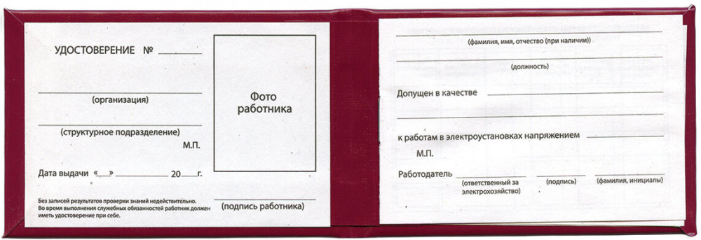 Staff Удостоверение для проверки правил работы в электроустановкахВ данный момент этот товар отсутствует в продаже. Возможно, у нас найдется аналогичный или похожий товар здесь. Бланк документа «Удостоверение для проверки правил работы в электроустановках» STAFF соответствует установленному образцу. Обложка из бумвинила приятна на ощупь и имеет эстетичный внешний вид. Выполнена из качественного износостойкого материала кожзам, стойкого к многократному изгибанию и истиранию. В сочетании с книжным переплетом ей свойственна хорошая износоустойчивость. Такое изделие сохраняет целостность в течение долгого времени. Внутри удостоверение имеет бумажную вклейку из офсетной бумаги плотностью 60 г/м2 с графами для заполнения. |