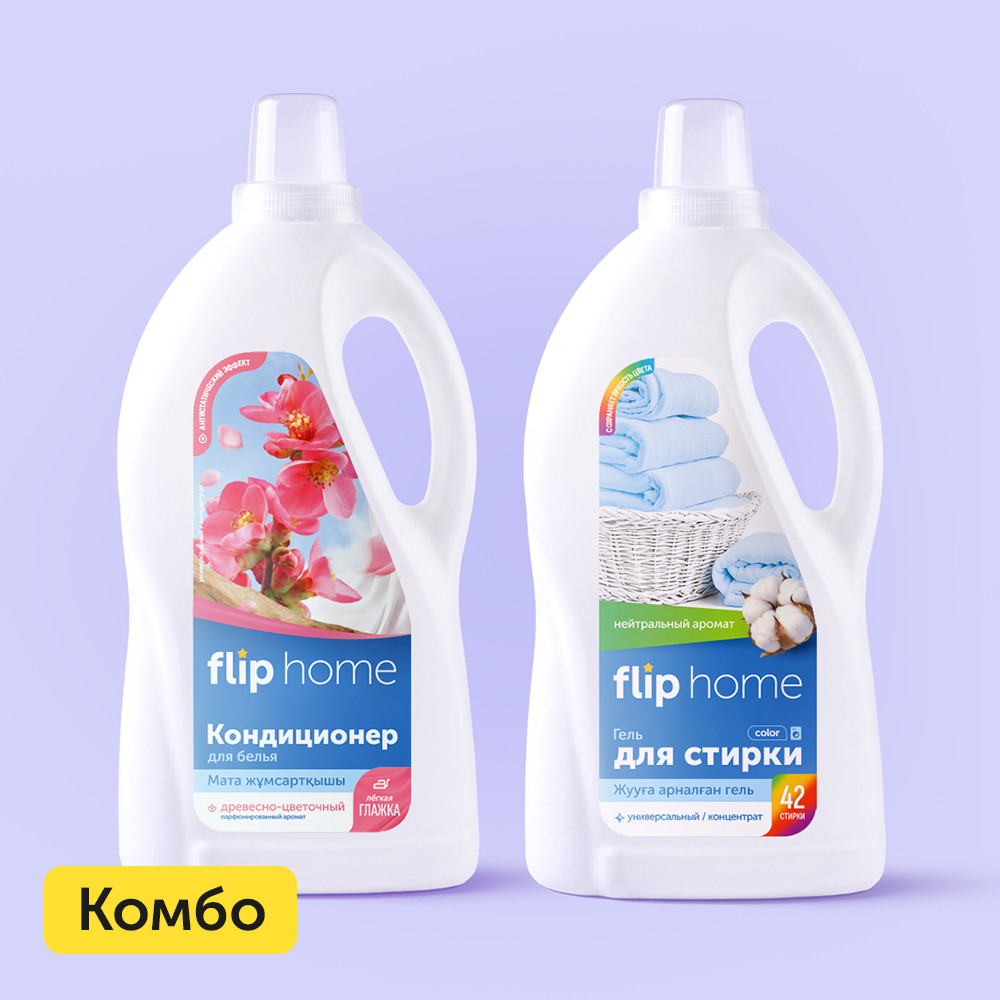 Комплект Flip Home — это продуманный дуэт средств для эффективной и бережной стирки. Гель для стирки без запаха глубоко очищает ткани и сохраняет их качество, а кондиционер придаёт мягкость, защищает волокна и оставляет лёгкий древесно-цветочный аромат. Идеальное решение для тех, кто ценит чистоту, комфорт и заботу об экологии.